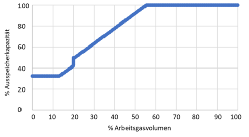 Horizontale Einspeicherkennlinie kommt zur Anwendung.